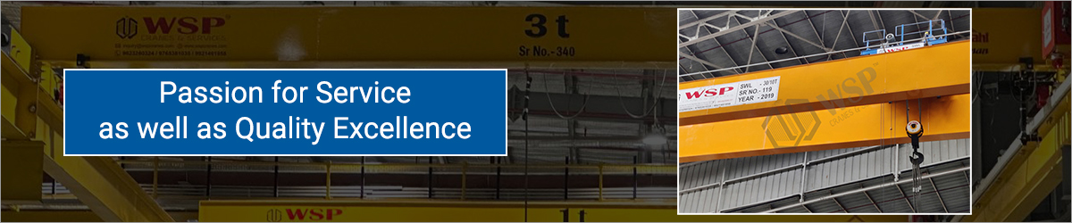 WSP Cranes & Services has state-of-the-art facilities in Pune, Maharashtra, India, where the company experts have easy access to best-of-breed production machinery and product testing tools. Products like Modular Cranes, JIB Cranes, Monorails Cranes, Under Slung Cranes, Transfer Trolleys, Wire Rope Hoists, etc., are fabricated to perfection as per global quality standards. The company proudly designs and delivers the best of products and crane technology to customers across industry verticals and geographies from this same facility.